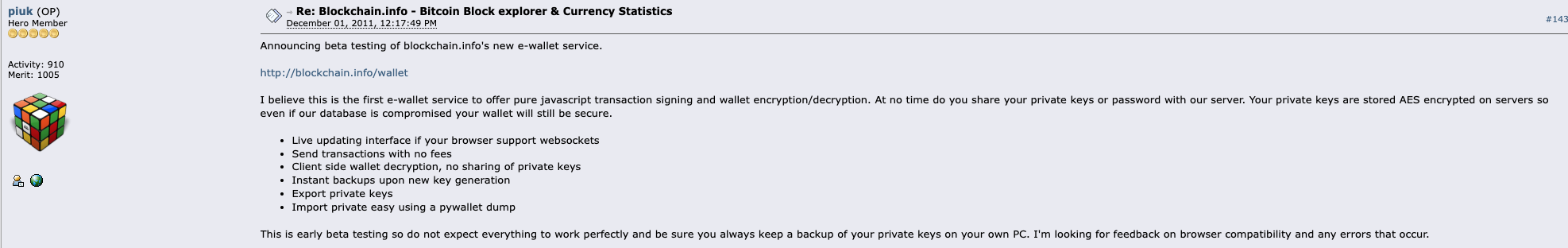 Blockchain.com was founded in mid 2011 as Blockchain.info, and released its Bitcoin wallet on Dec 1, 2011. The Blockchain wallet has many accolades: